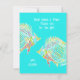 Nota de agradecimento para crianças enviarem com ilustração de peixe tropical. Dois peixes coloridos nadam sobre um fundo azul aqua brilhante. Personalize com texto em dois lugares na frente. Um curto “obrigado” com assinatura é sugerido. O verso é verde abacate sólido.