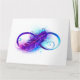 Infinity symbol with a beautiful feather painted in purple and blue bright colors on white background.