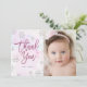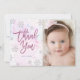 Diga obrigado a você com este cartão com fotos de na moda e chic, apresentando tipografia de script de chic em brilho rosa com falso falso falso falso floco de neve com brilho prateado. Adicione sua foto e seu texto, com espaço para uma mensagem adicional no verso.