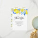 Elegante convite de chuveiro de noiva floral azul e limão italiano com letra de script. Perfeito para eventos de verão, jardim ou temas da costa de Amalfi. Editável e elegante!