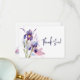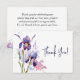 Cartão de agradecimento plano de casamento retrata um design casual de aquarela floral com simples flores de Íris azuis e roxas, folhagens e respingos. A mensagem no verso pode ser personalizada ou excluída para uma nota escrita à mão e o cartão usado para várias ocasiões.
