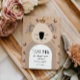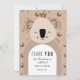 This sweet koala thank you card features a gentle illustration with a tiny crown and soft celestial details in warm neutral tones. Designed to feel calm, cozy, and heartfelt, it’s a lovely way to thank guests for their love, thoughtful gifts, and kind wishes.