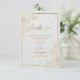 Um elegante local floral francês branco e dourado com design de folha de ouro tropical com tipografia dourada impressa manuscrita. Estas cartas de obrigado de casamento de luxo... são o impressão perfeito para qualquer evento de casamento de noiva e noiva. Personalize este design com seus detalhes e monograma inicial. Todas as designs são impressas.