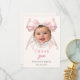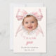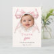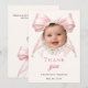 Cartão De Agradecimento Laço rosa batizado foto pérolas marfim menina