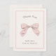 Cartão De Agradecimento Laço Xadrez Rosa Claro Elegante Chás de Bebê