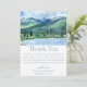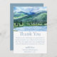 Esta bela nota de agradecimento é perfeita para casais que querem obrigado convidados pelo seu tempo e generosidade. Estas podem ser utilizadas para um noivado, casamento ou chá e combinam perfeitamente com outros itens do Tema Serene Watercolor Lake. O topo da design apresenta uma montanha e uma paisagem de lago e a parte de trás da design é colorida em azul francês.