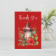 Cartão De Agradecimento Lanterna de Natal Vermelho Poinsettia e Pinheiro