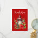 Cartões de agradecimentos com uma imagem de Natal acolhedora, com uma lanterna vermelha rodeada de pinheiro e uma poinsettia e sagrada