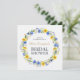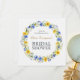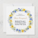 Celebrar a noiva-a-ser com um charmoso design de flores silvestres, com delicadas flores azuis, amarelas ensolaradas e lavandas moles, organizadas em forma circular graciosa. Esta coroa inspirada em aquarela evoca um novo prado de primavera e adiciona um toque romântico e rústico a convites de chá de panela, décor ou favores. Perfeito para chás de jardim ou celebrações do interior, esta coroa floral traz beleza natural e um doce senso de alegria ao dia especial.