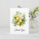 Thank you card with a lovely illustration of a bouquet of lemons surrounded by white blossoms leaves and sprigs.