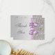 Personalizado formal Obrigado cartões de nota simples para qualquer evento - casamentos, chás de fraldas, festa de aniversário, doce 16, celebrações de Quinceanera, noivados, chá de panela etc. Elegante obrigado prateado e lilás de dois lados, com uma bela brilha cintilante impressa cintilante, rotinas, padrão de sequências, arcos vetoriais e fitas lindas e brilhantes impressas, e diamantes de imagem bonito e impressos por na moda, bordando joias e texto de cinza escura. Essas cartas elegantes e elegantes são decoradas de ambos os lados. Bonitas, quentes, modernas cartas de lado duplo com brilho e glamour. NOTA: Estas são imagens impressas em formato plano - sem partes levantadas. Tenho produtos correspondentes na minha loja. O texto, a fonte e as cores da fonte são todos personalizáveis/personalizáveis para atender às suas necessidades. Se precisar de ajuda para personalizar seu produto, entre em contato comigo através da minha loja. Ficarei feliz em ajudar.POR FAVOR, OBSERVE:- Todos os convites no Zazzle têm imagens impressas em formato plano.