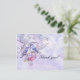 Bela tonalidade de roxo claro, cartão de agradecimento de casamento 5x7, com um par de pássaros azuis entre lilases roxos e rosados