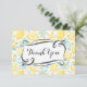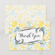Um cartão com uma moldura caprichosa e fantasia na frente contém as palavras Obrigado. Você também pode alterar as palavras para se adequar à sua ocasião única. Projetado com um padrão encantador e fofo composto por limões amarelos e flores azuis pastéis em um estilo ilustrado desenhado à mão. O verso tem o mesmo padrão, mas com uma sobreposição semitransparente por cima para que você possa escrever uma mensagem pessoal se desejar.