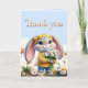 Cartão De Agradecimento Lindo coelho menina com laço de bolinhas Obrigado