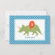 Cartão De Agradecimento Lindo Dinossauro de Aniversário Triceratops Azul P