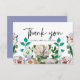 Lindo azul com cartão de nota de agradecimento de flores em aquarela pastel.