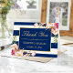 Cartão de Agradecimento Listras de Azul-Marinho Dourado Floral Rosa.