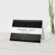 Cartão de agradecimento elegante com listras em preto e branco sobre um fundo de aquarela com listras douradas falsas contra carvão.