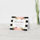 Cartão De Agradecimento Listras Pretas e Brancas Modernas Elegante Floral