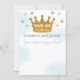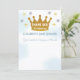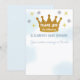 A little prince is on the way! Boy baby shower with gold crown and silver and gold stars with dreamy blue watercolor background