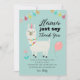 Convite de aniversário do tema Lama para o seu filho! Ilustração de uma lhama com um smiley face bonito com um chapéu de festa e decorações coloridas ao redor do pescoço. Há flor e balão à sua volta. O texto diz "Llama apenas diga obrigado." A redação do cartão obrigado os hóspedes para os presentes e para os próximos. Excelente para a festa de aniversário de uma garota. Design bonitinho e caprichoso. Ilustração original e design de Namibear. ©namibear