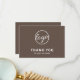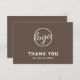 Cartões de agradecimentos comercial personalizado marrom apresentando um design minimalista com o logotipo na frente junto com "Obrigado pela sua compra". O verso tem sua mensagem pessoal. Um design básico e simples que ainda aparece como profissional. Este simples cartões de agradecimentos é excelente para qualquer tipo de empresa, grande ou pequena.