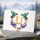 Celebrate with timeless elegance using this letter U monogram thank you card, featuring exquisite jeweled hummingbird artistry. Each detail sparkles with emerald, ruby, and diamond embellishments, complemented by stunning amethyst blooms and intricate golden vine work.