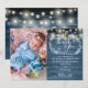 Cartão De Agradecimento Luzes de Corda Rústicas Azuis Foto Batismo