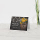 Cartão de agradecimento de casamento country elegante com um fundo de quadro-negro preto rústico, luzes cintilantes de corda, girassóis amarelos de verão, um barril de madeira de vinícola com suas iniciais e um pedaço de corda amarrada.