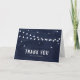 Cartão de agradecimento rústico e caprichoso com luzes de corda brancas, estrelas e pontos em um fundo azul naval aquarelado. Este é parte de uma coleção de convites, itens correspondentes estão disponíveis. O cartão de agradecimento perfeito para casamentos, formaturas e eventos semelhantes.