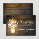 Jarras de Mason rústicas com flores de baby's breath em cartão de agradecimento de casamento em fundo de madeira para casamento de verão, outono, primavera ou inverno! Design perfeito para o casamento country com jarro de Mason pendurado. Entre em contato para qualquer suporte na personalização do design. Produtos correspondentes disponíveis