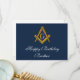 Azul Marinho, cartão de aniversário do Maçom. Cartão de aniversário do esquadro e compasso Maçônico. Por favor, personalize-o com seu próprio texto ou exclua-o e escreva suas próprias palavras à mão.