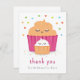 Doce o dia de alguém com este Cartões de agradecimentos de Cupcake de Mãe e Bebê! Ilustração gráfica estilizada e vívida de um cupcake grande (mãe) e pequeno (bebê) com espirais coloridos O pequeno cupcake é uma imagem cuspida do cupcake da mamãe - o símbolo final do amor materno Ambos os cupcakes humildemente estendem sua gratidão ao receptor do cartão por presentes e sua presença no chá de fraldas da mãe e do bebê Este cartão encantador é a forma perfeita de expressar sua apreciação sincera esses que comemorou a chegada do seu pequeno. O seu design cômico corresponde ao convite para Chá de fraldas de Cupcake de Mãe e Bebê, criando um conjunto coeso e memorável. Mostre aos seus entes queridos o quanto o apoio deles significa para você e sua família em crescimento.