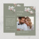 Light pink fine art flowers on a custom photo with a left aligned thank you text on a sage green background.