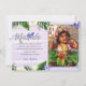 Cartão de agradecimento com mahalo, design tropical e fundo roxo.