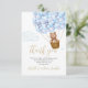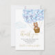 Lindo cartão de agradecimento de churrasco de bebê azul, menino, com tema de urso de pelúcia "mal podemos esperar". Criado por Thisisnotme©