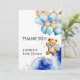 Mostre sua gratidão com estilo com este cartão de agradecimento temático "We Can Bearly Wait" — a maneira perfeita de agradecer aos convidados por celebrarem seu pequeno! Com um adorável ursinho pintado à mão, detalhes em aquarela azul real e dourado, e balões dourados e azuis, este cartão adiciona um toque caloroso e pessoal à sua gratidão.