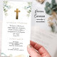 Agradece, ditado, por su asistencia con este hermoso marcalibros de primera comunión botánico con jas de Eucalipto en acuarela. Borde inferior con manchas delicadas de acuarela. Diseño unisex, ideal tanto para primera comunión de niño o niña. Puedes dejar nuestro verso o agregado cualquier otro mensaje o verso que prefieras. Área superior libre de diseño en caso de que quieras perforar un hoyo y agregado un liston decorativo. Invitación mismo diseño! Parte de nuestra colección "Elegante Verde Eucalyptus Wedding and Events" con gran variedad de productos para coordenar les.