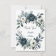 Um casamento sofisticado com um marinho azul-d'água, coroa corada floral, enfeitado com peonias, rosas e verde eucalipto em tons de azul marinho, verde e marfim. A design é aprimorada por uma caixa de cinza prateada, impressa abaixo da coroa, com layout de texto de fonte moderno. O verso do convite continua o tema com arranjo floral correspondente para um olhar coeso e elegante. Perfeito para casais que buscam eterno e papelaria de casamento clássico.