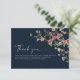 Cartão De Agradecimento Marinho Azul Flores Selvagens Flat De Casamento Ob