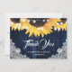 Cartão De Agradecimento Marinho Azul Girassol Madeira Palha Luz Casamento