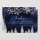 Obrigado seu convidado por vir ao seu casamento no inverno com esta reluzente cintilação prateada brilha a neve e o cartões de agradecimentos de flocos de neve, com pinheiros reluzentes prateados em um elegante fundo azul de marinho de inverno.