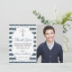 Marinho De Lâmpada De Prata Blue Stripes Primeiro Cartões de agradecimentos De Comunhão
