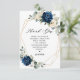 Cartões de agradecimentos de chá de panela azul-escuro com buquê elegante de azul-marinho, azul-real, branco, marfim de champanhe, rosa de cor esbranquiçada, hydrangea, ranunculus, pénia, botões de flores e folhas de eucalipto verde-sábio e elegante cor de água com estrutura neutra geométrica de brilho redondo. Entre em contato comigo para obter ajuda sobre a personalização ou se você precisar de outro produto com este design.