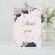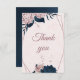 Cartão De Agradecimento marinho elegante e rosa-flores poeirento obrigado