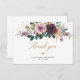 Cartão De Agradecimento Maroon rosa flores escamoteando ouro floral