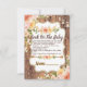 Rustic Baby Shower book for the baby card- Printable Template Featuring a Mason Jar with a Rose Gold Glitter Bottom and Blush and Dusty Rose Flowers Peach Calligraphy, and String Lights on a Dark Wood Background - Edit, Customize, Personalize