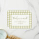 Camarão romântico estilo camarote estilo camarote, erva de verão verde e padrão de xadrez de gingham checker branco. Com uma caixa de texto branca correspondente ligada com uma caixa de texto totalmente editável. Obrigado, mande o texto para a frente da placa e para o lado inverso com um padrão completo sem uma caixa de texto. Há também uma versão deste cartão com caixas de texto em ambos os lados. Este design tem um fundo fixo, mas o tamanho e a posição do padrão podem ser alterados.