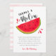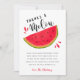Cartões de agradecimentos de chá de fraldas com tema de docinho bonito com ilustração de uma melancia vermelha com um sorriso. A mensagem obrigado hóspedes por vir ao chá e pelos presentes. Perfeito para um chá de verão.