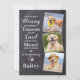 Pet Memorial Simpatia Obrigado Cartões. Estes cartões memoriais de compaixão apresentam uma foto personalizada no 'design' de 'chalkboard' rústico. Citação " Sua vida foi uma bênção, sua memória um tesouro, você é amado além das palavras, perdido sem medidas " Personalize com sua mensagem de obrigado, com uma pata impressa em um coração, e cite "Pata Imprime para sempre em nossos Corações". Estes cartões de compaixão memoriais são perfeitos para o funeral, cartas de agradecimento, serviço memorial, gratidão por perda de animais de estimação e apreciação de simpatia, ou celebração da vida, cartas de agradecimento. Veja 'personalizar esta modelo' para alterar a foto, o nome e a mensagem. COPYRIGHT © 2022 Judy Burrows, Black Dog Art - Todos Os Direitos Reservados. Simpatia Pet Personalizada 3 Foto-Dog Cartões de agradecimentos Memorial